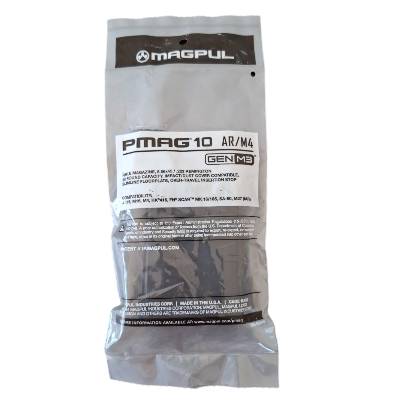 O PMAG® 10 GEN M3 é um carregador compacto e altamente confiável, projetado pela Magpul para plataformas AR15 / M4 compatíveis com munição 5.56×45 mm NATO / .223 Remington. Com capacidade para 10 tiros, é ideal para situações em que restrições de capacidade se aplicam ou para uso em tiro de precisão.